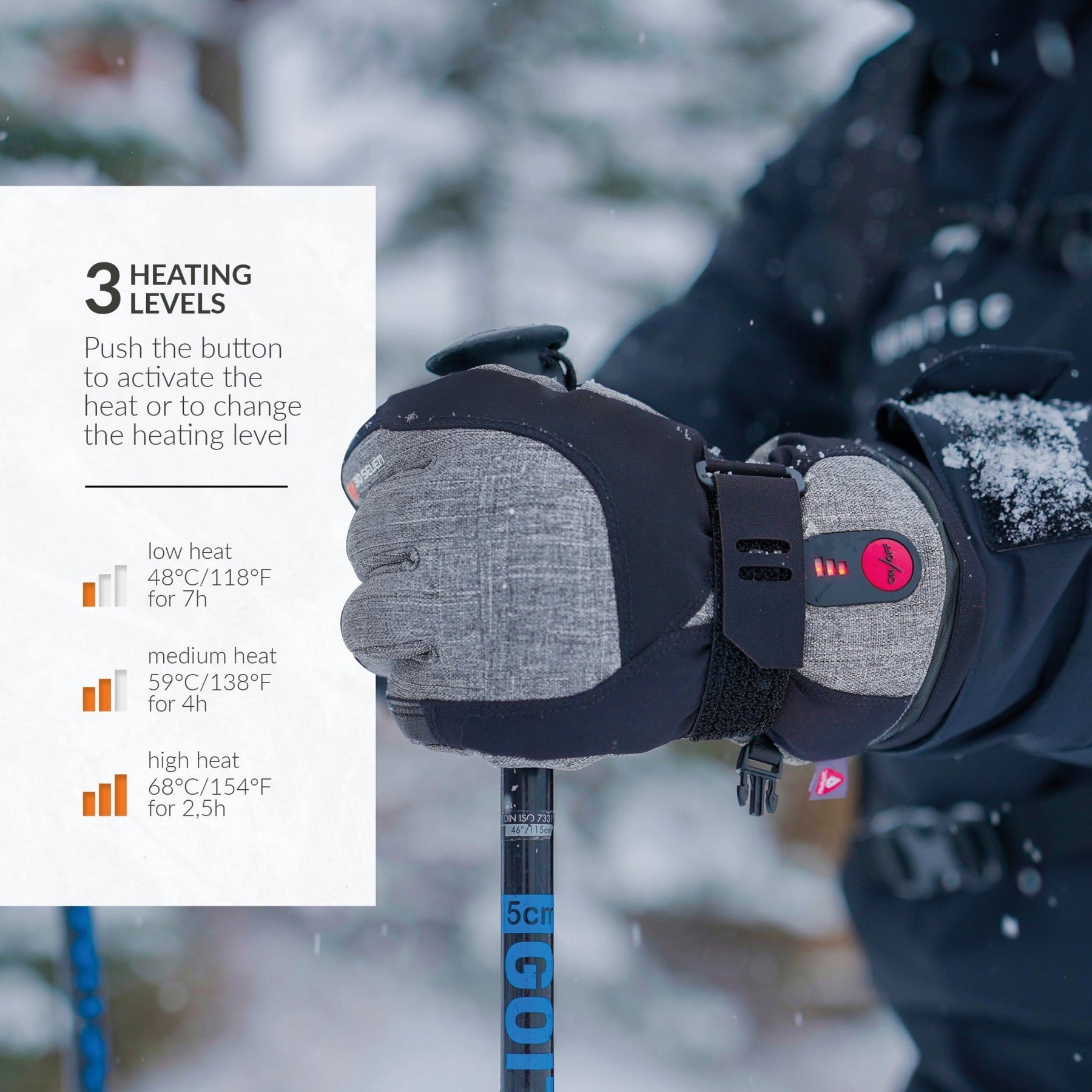 INSTANT HEAT: These electrically heated gloves for cold weather maintain temperature for safe, continuous heat. Perfect outdoor winter gear. Easily change heat settings at the touch of a button.