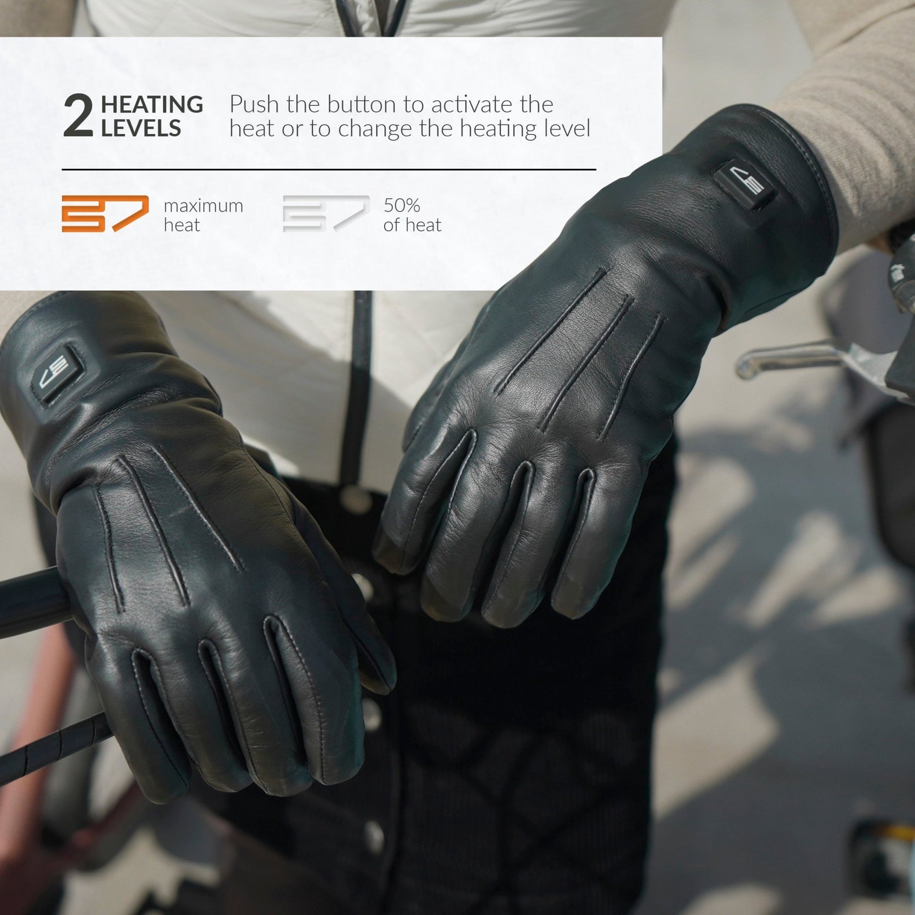 Heated leather gloves - Black + (FREE EXTRA SET OF BATTERIES)