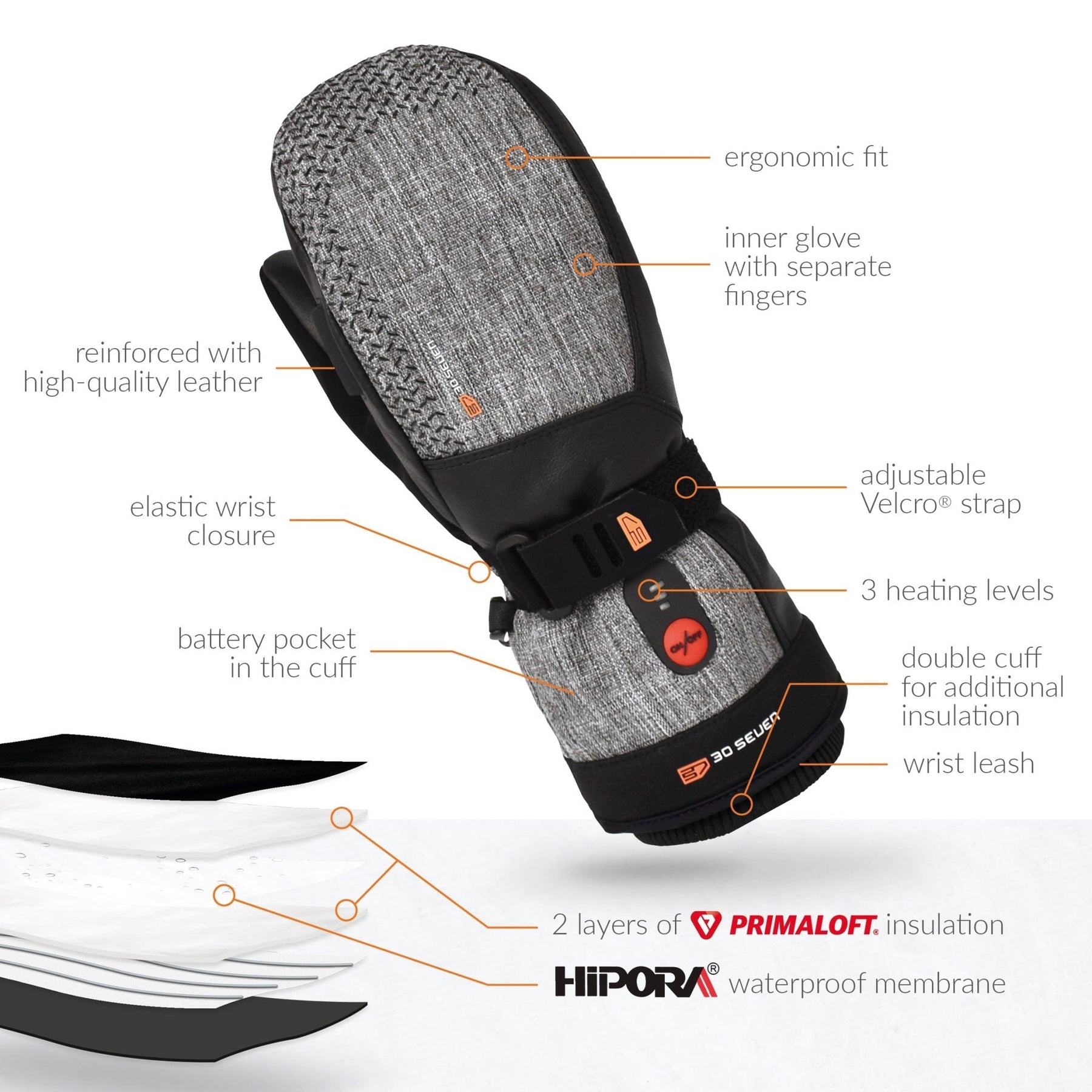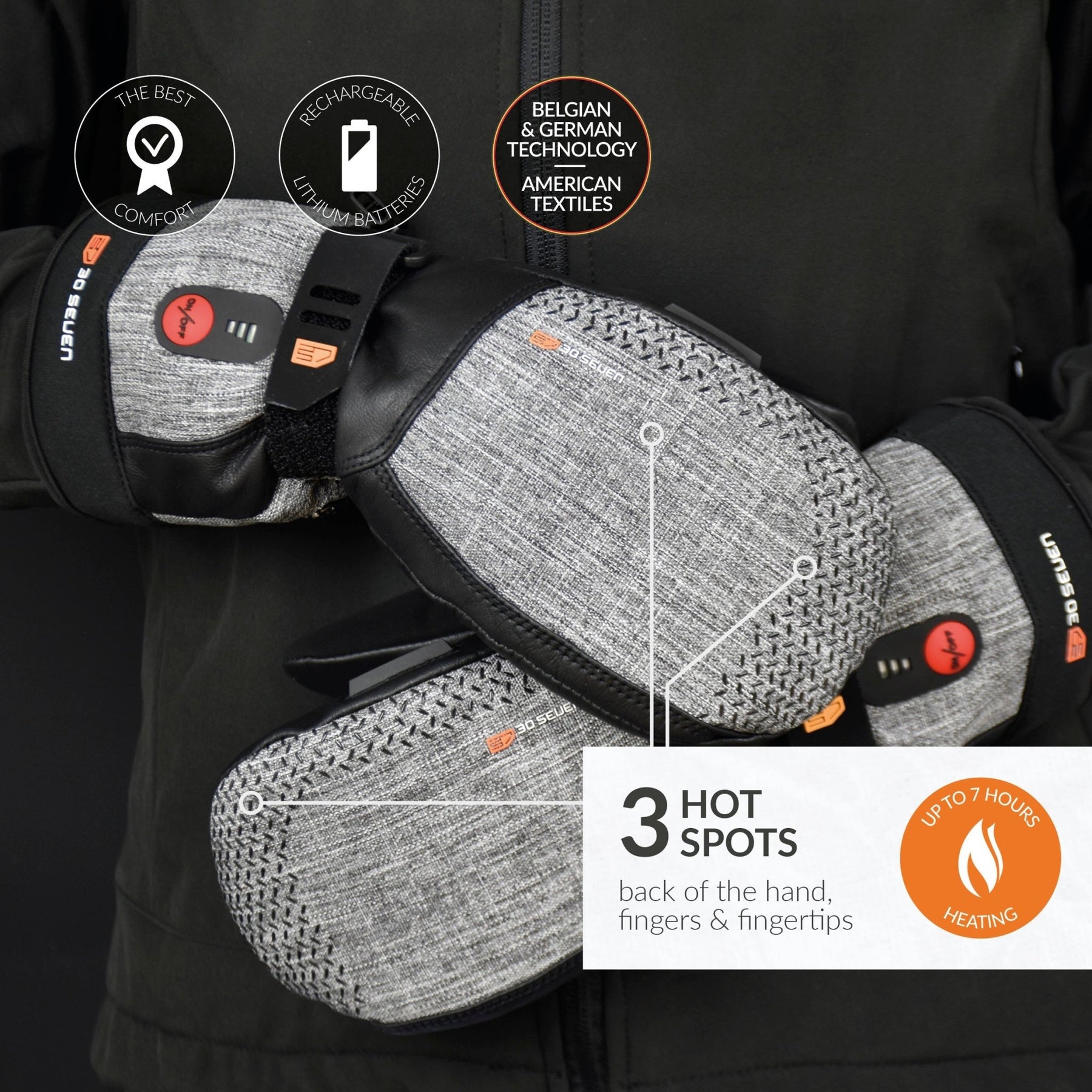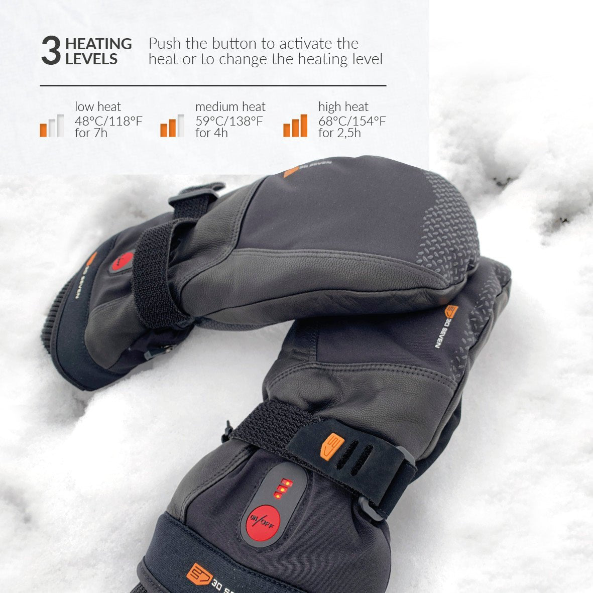 OUTDOOR GEAR: 30seven's extra-warm, double-insulated, heated mittens are suitable for use in snow and anywhere you need waterproof, windproof warmth. Ideal for snow sports, ski mittens, snowboard, snow scooter, snowmobile, shovelling snow, and more.