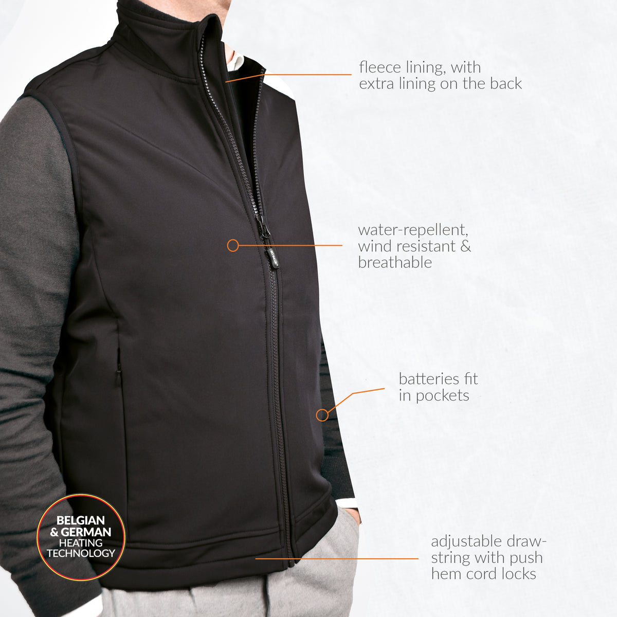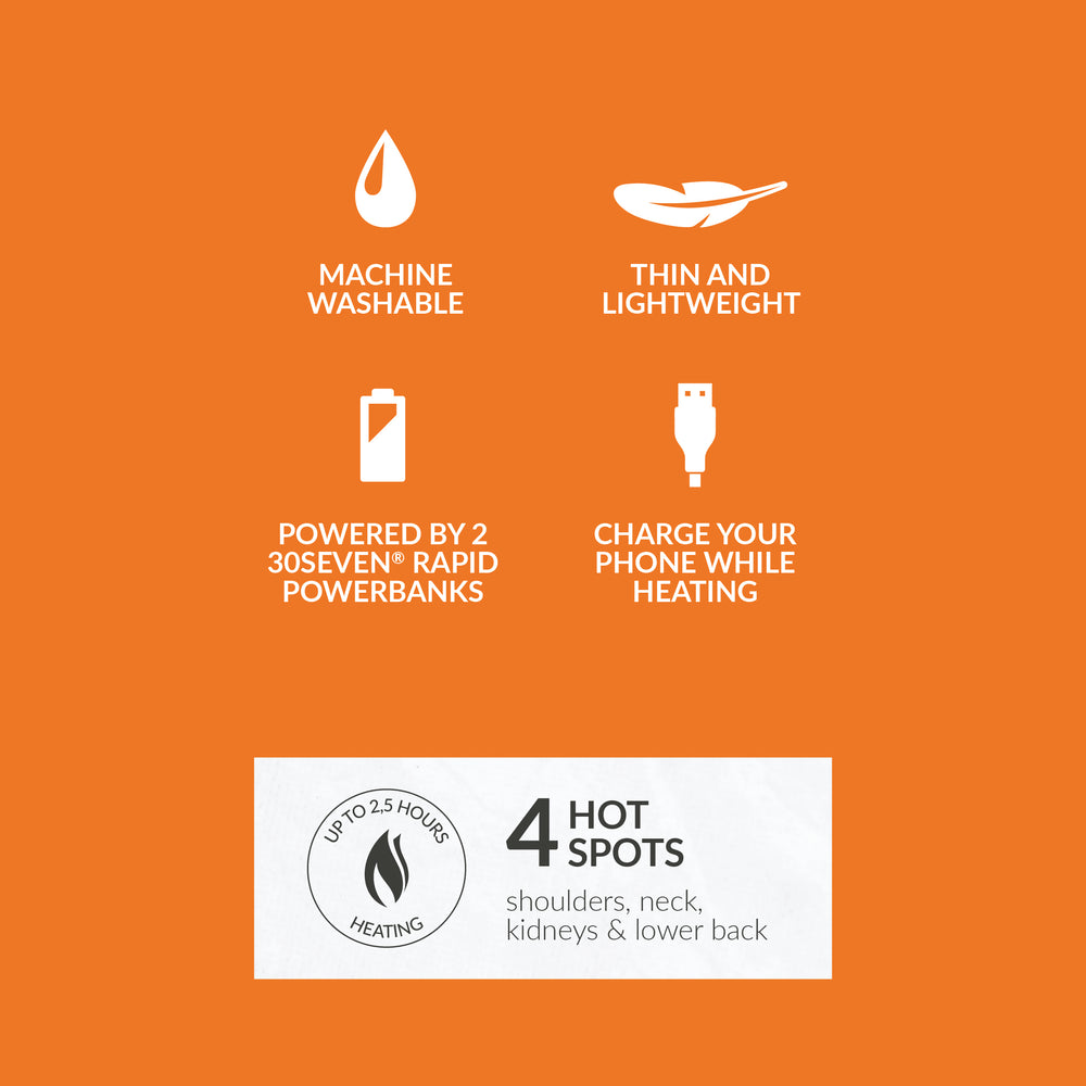 vraiment confortable et les éléments chauffants sont parfaitement positionnés. vous ressentez la chaleur exactement là où vous en avez besoin. s'adapte bien sous ma veste habituelle aussi quand il fait très froid. je recommande sans hésiter